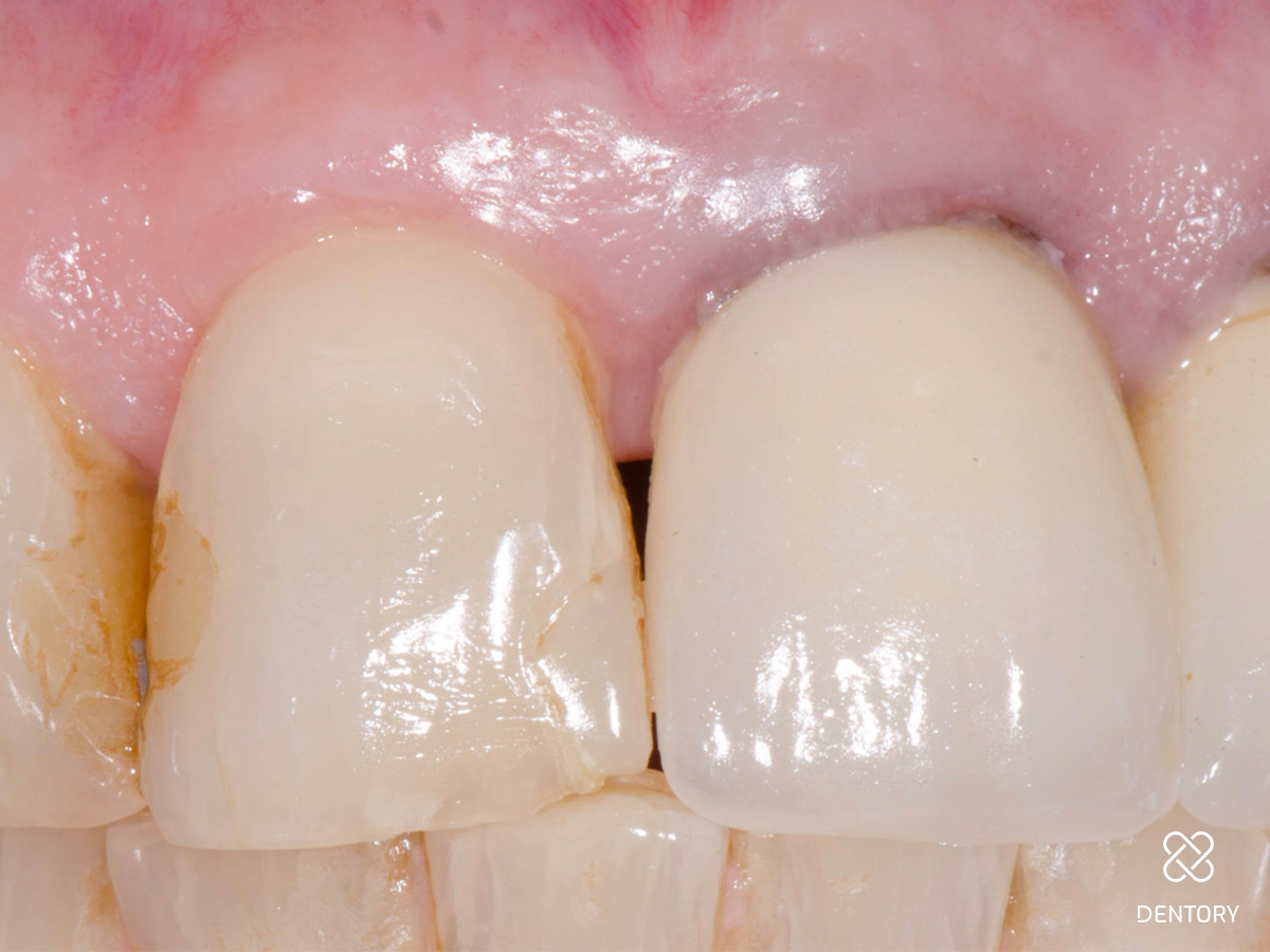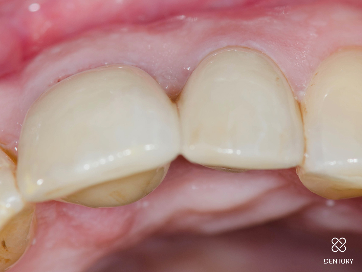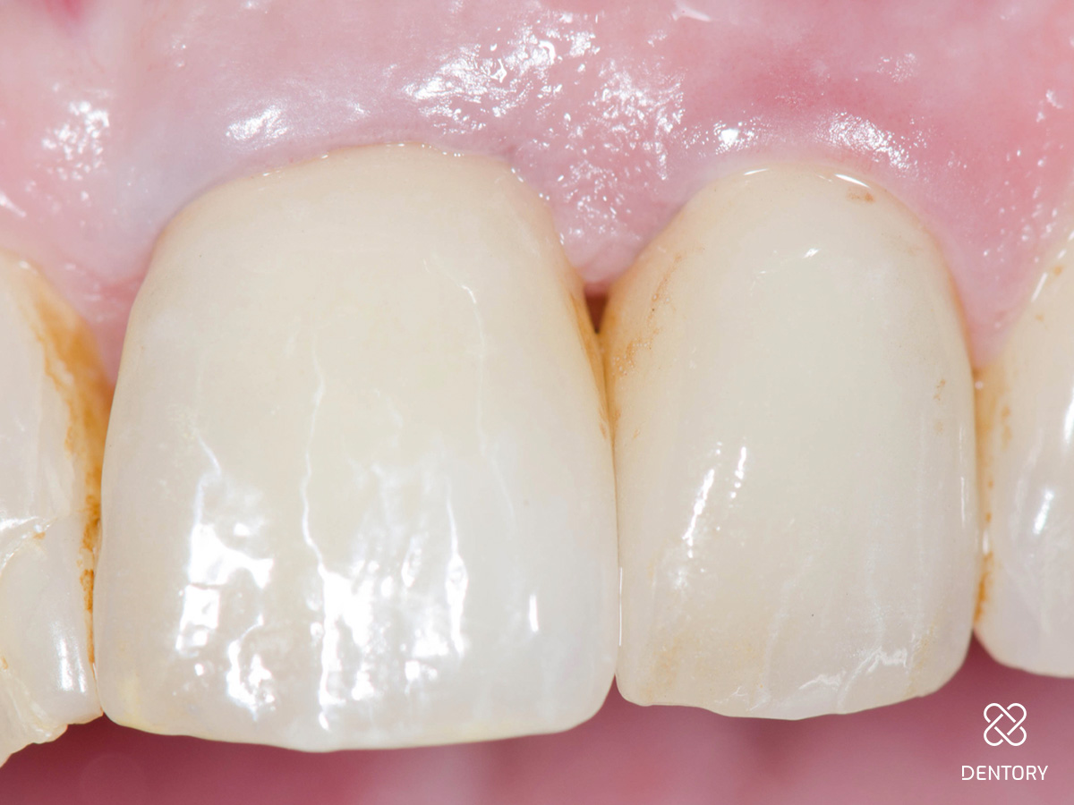 Abschluss: Klinische Situation nach dem vollständigen Aushärten des Zements und dem Entfernen der Überschüsse.