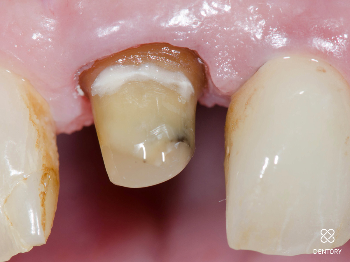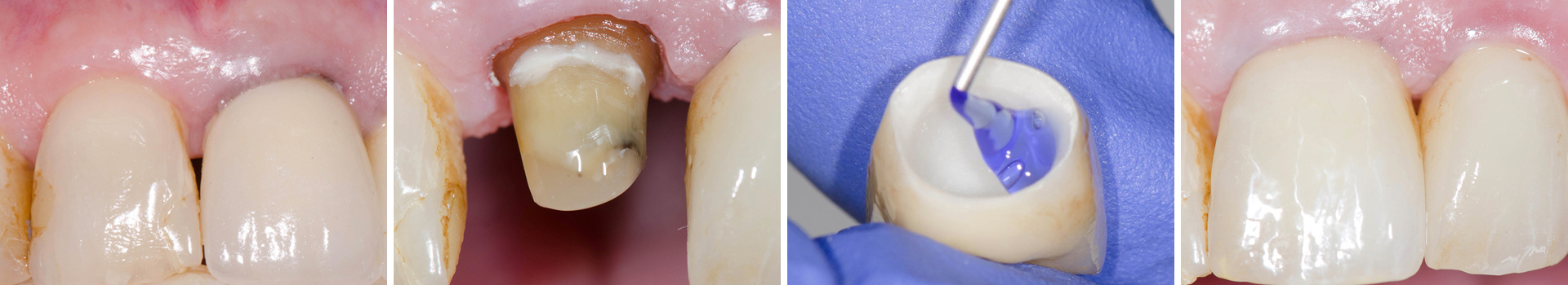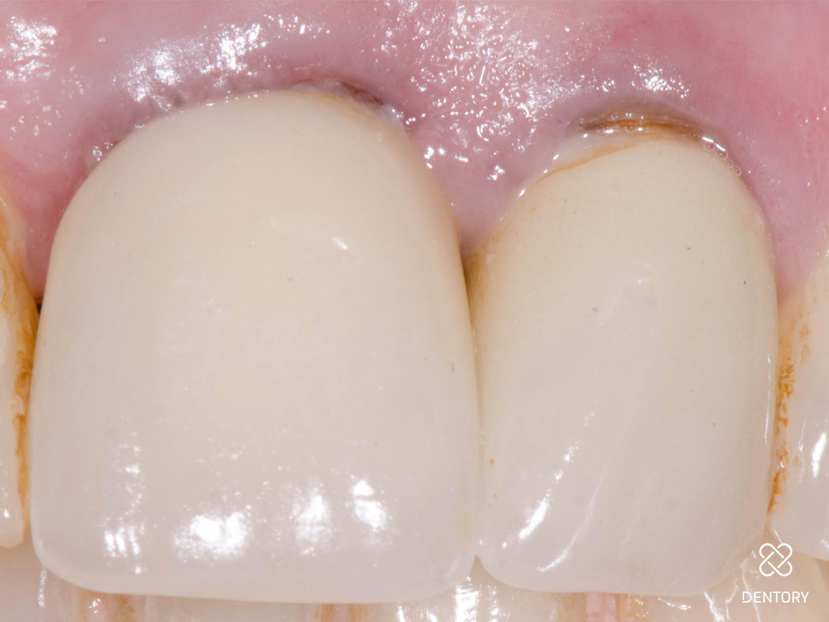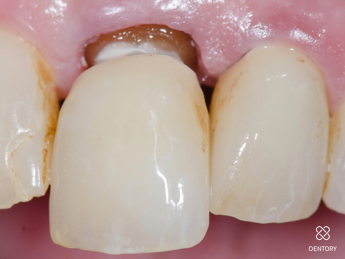 Abschluss: Klinische Situation nach dem vollständigen Aushärten des Zements und dem Entfernen der Überschüsse.