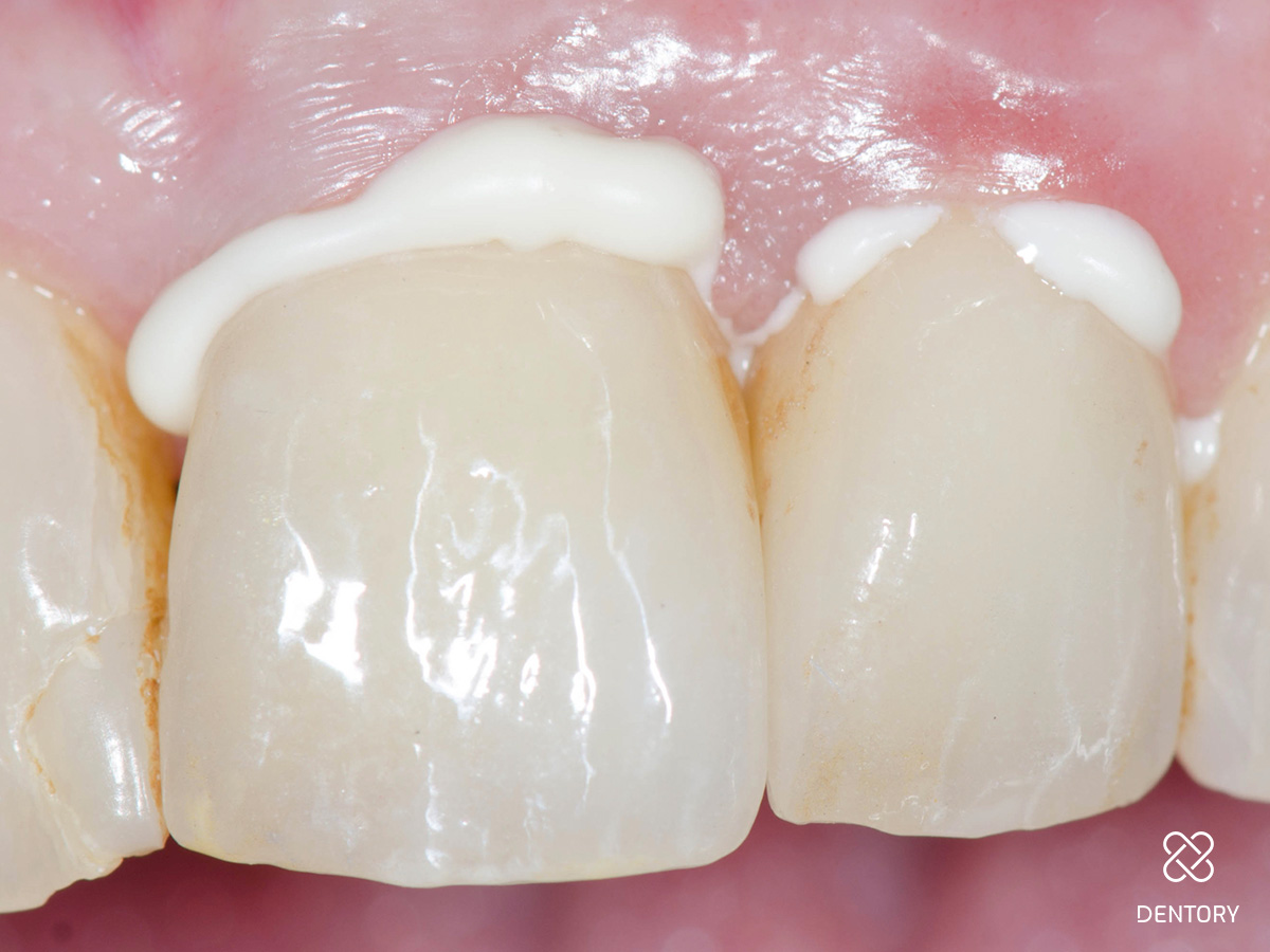 Der Zement kann für 20-30 Sekunden lichtgehärtet werden oder selber aushärten. Abschliessend die Überschüsse entfernen.