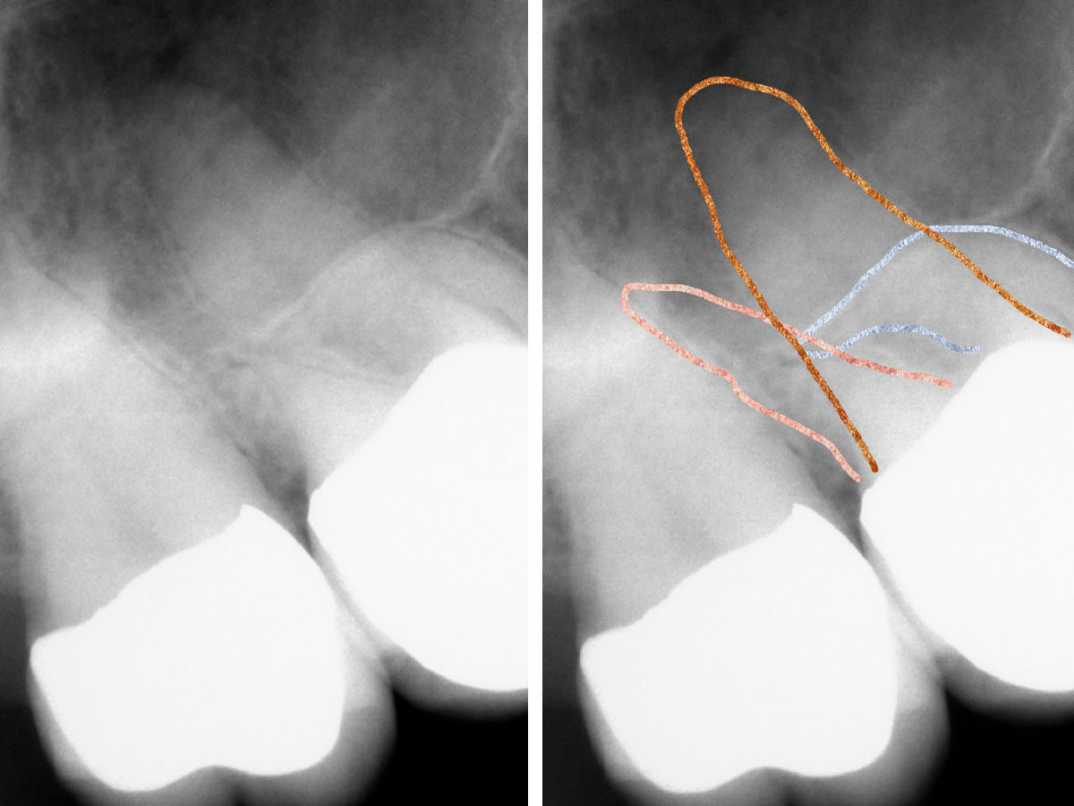 Ein Patient stellte sich mit unklaren Schmerzen in Regio 16-17 in der Praxis vor. Er klagte über eine sporadische Temperaturempfindlichkeit (kalt und warm). Eine Überweisung mit der Bitte um „endodontische Abklärung bzw. Weiterbehandlung im Quadrant I“ lag vor. Die klinische Untersuchung ergab keine relevanten Ergebnisse: 16 und 17 leicht klopfdolent, Vitalitätstest 14-17 unauffällig, Palpation apikal: negativ.