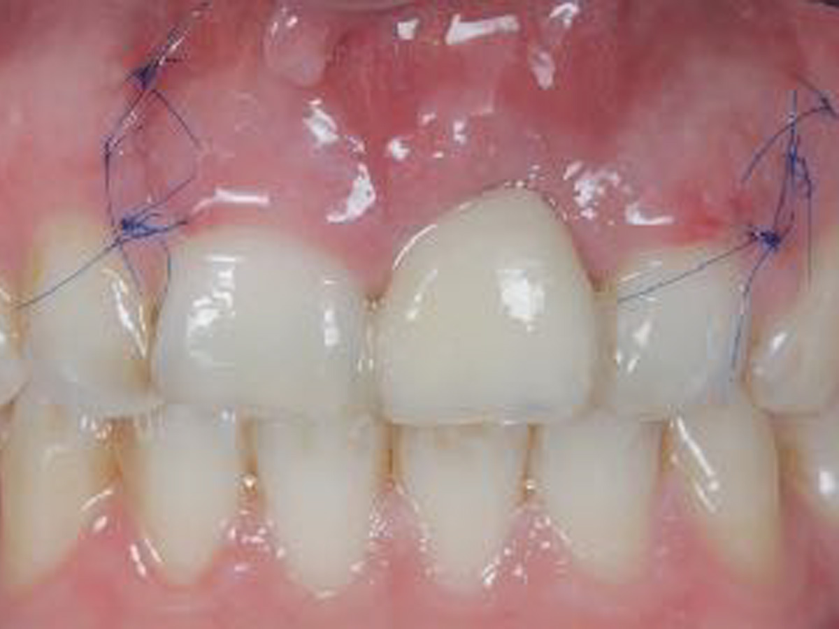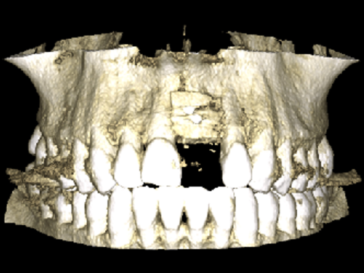 Der entstandene Raum wurde mit autogenen Knochenspänen gefüllt, die vom Ramus entnommen wurden.