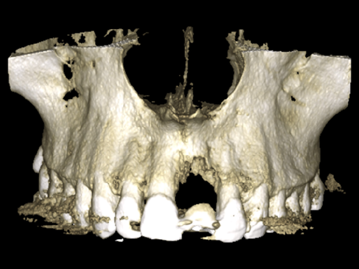 CBCT-Scan zeigt vertikalen Knochendefekt nach Klasse 5 von Benic und Hämmerle.