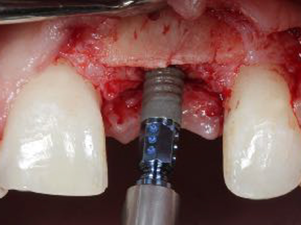 Rekonstruktion der bukkalen und palatinalen Knochenplatte mit der Lamina hart (OsteoBiol®).