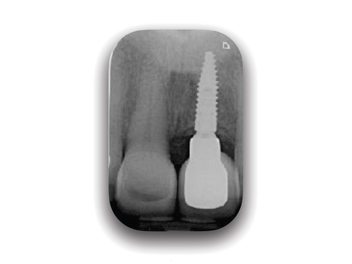 Periapikales Röntgenbild 2 Jahre nach der Implantation.