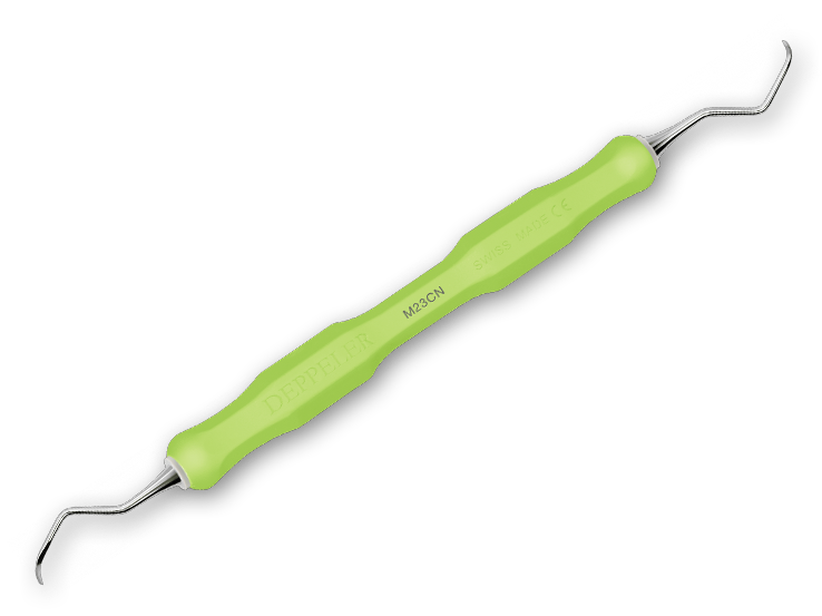 In dem Wunsch, innovative Produkte zu entwickeln, die den strengsten Schweizer Fertigungsstandards entsprechen, entwarf Arnold Deppeler Jr. den originalen M23® Universal Scaler. Dieses Instrument hat die Dentalindustrie auf der ganzen Welt revolutioniert und ist zum Schweizer Taschenmesser aller Zahnärzte geworden. Weitere Innovationen folgten, wie die 1997 patentierte Titankürette, die 2005 patentierte Furkationskürette und der 2010 entwickelte ergonomische, leichte und hygienische CLEANext-Griff.