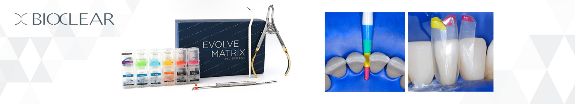Die Bioclear Evolve-Matrizen sind eine Weiterentwicklung der Bioclear Biofit-HD Matrizen. Sie verfügen über dieselben Vorteile und wurden zudem mit weiteren innovativen Features ausgestattet. Die Evolve-Matrizen sind in drei Breiten anatomisch vorgeformt, damit sie auf mehr Zähne passen und weniger manuelle Formgebung und Konturierung erfordern.