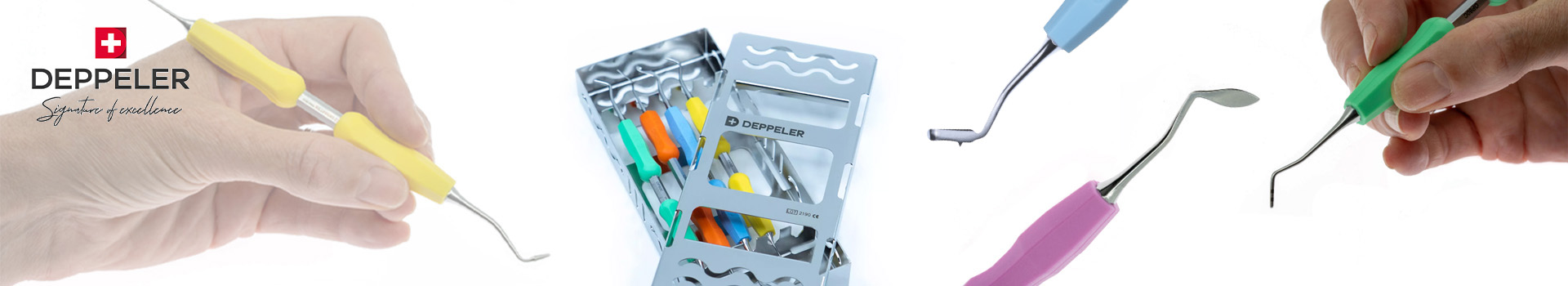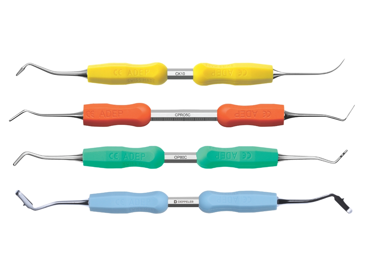 Dieses Deppeler Composite-Restaurations-Kit nach Dr. Martin von Sontagh ist nicht nur für ästhetische, sondern auch für funktionelle Versorgungen konzipiert. Dank der integrierten Markierungen und des Lineals können die Endpunkte der Kariesentfernung bestimmt, die richtige Menge an Composite aufgetragen und die Breite der Frontzähne gemessen werden. Die scharfen Instrumente dienen zum präzisen Modellieren der Randkonturen und zum Schneiden des Composites für einen sauberen Abschluss. Dank des Designs von Konus und Spatel ist die richtige Höhe der Schrägen und Ränder für minimale Anpassungen gegeben.