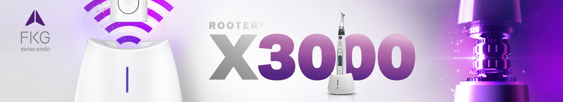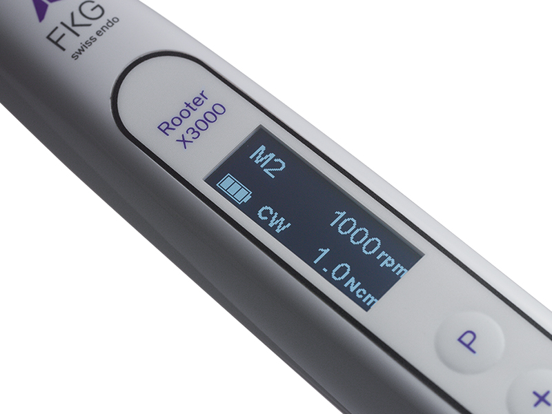 Der kabellose Endodontie-Motor vereint technisches Know-how, Funktionalität und Flexibilität in einem nur 20 Zentimeter langem Gerät. Der Rooter® X3000 verfügt über einen integrierten Apex-Locator, zehn programmierbare Speicherplätze und ist sowohl für reziproke als auch voll rotierende Feilensysteme geeignet.