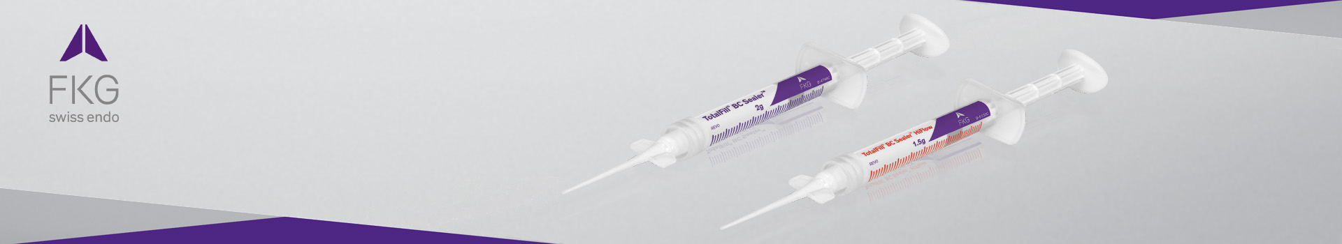 Die TotalFill® biokeramischen Füllungsmaterialien zeichnen sich insbesondere durch ihre biologischen Eigenschaften wie die hohe Biokompatibilität, Bioaktivität und antibakterielle Wirkung, aber auch ihre hervorragenden physikalischchemischen Eigenschaften aus. Beim Aushärten schrumpfen sie nicht, sondern haben sogar eine leichte Tendenz dazu, sich auszudehnen. Somit garantieren sie einen perfekten Verbund zwischen Dentin und Wurzelkanalfüllungsmaterial und sind zudem hydrophil.