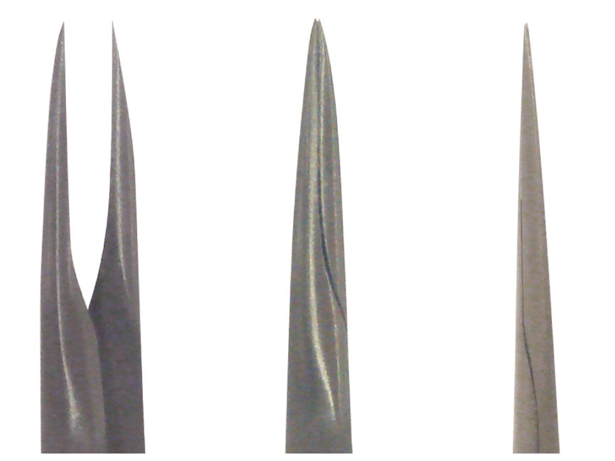 Aus rostfreiem Federstahl / Zum Entfernen von abgebrochenen Endo-Feilen oder Wurzelkanal-Stiften aus Metall / Bei nur kleinen Ansatzmöglichkeiten: kein Splittern, Abgleiten oder Abscheren / Alle Zangenmodelle mit Mikro-Karbidbeschichtung / E/W Federstahl-Zange mit Daumen-Verschluss / Lebenslange Garantie auf Materialien, Drehnieten und Verschlüsse.