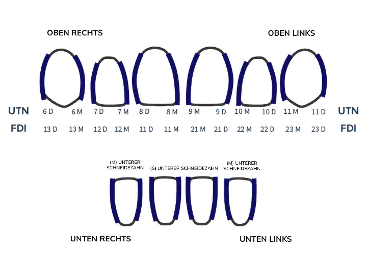 · Entwickelt für die Zähne 6–11 (Universal Tooth Numbering) bzw. 13–23 (FDI-System)